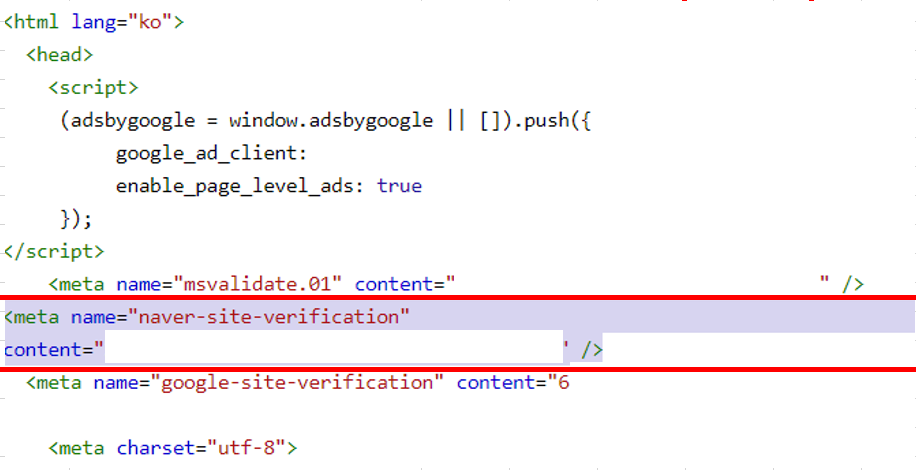 그런후 복사 위치는 위에 보이시죠 대략 <head> ~ </head> 사이에 넣어주면 됩니다. 네이버 아래로 구글도 넣고, 줌도 넣고 그렇게 하시면 될듯하네요. 위는 사이트 등록한 것지 사이트맵 등록한 게 아닙니다. 사이트맵은 아래에서 이야기할게요.