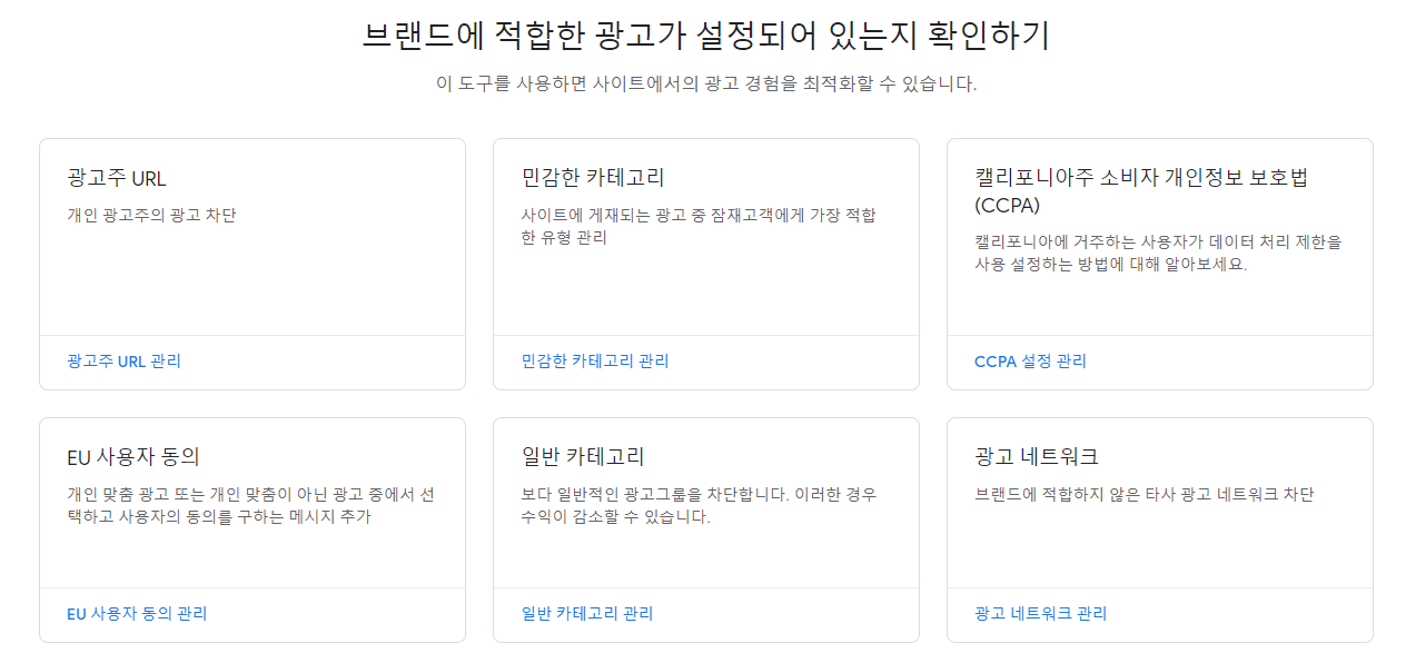민감한 카테고리 들어가면 광고 노출 비중 / 수익 비중 있습니다. 그것을 참고해서 해도 되고 자신의 블로그와 맞지 않는다고 생각하는 카테고리를 위처럼 차단해줘도 됩니다. 저는 정치, 종교 이런 것들을 차단해 놨네요. 블로그마다 다릅니다. 별 의미 없는 카테고리라면 차단하는 것도 좋을 수 있는데, 그건 스스로 자신의 블로그에 실험해 봐야 합니다.