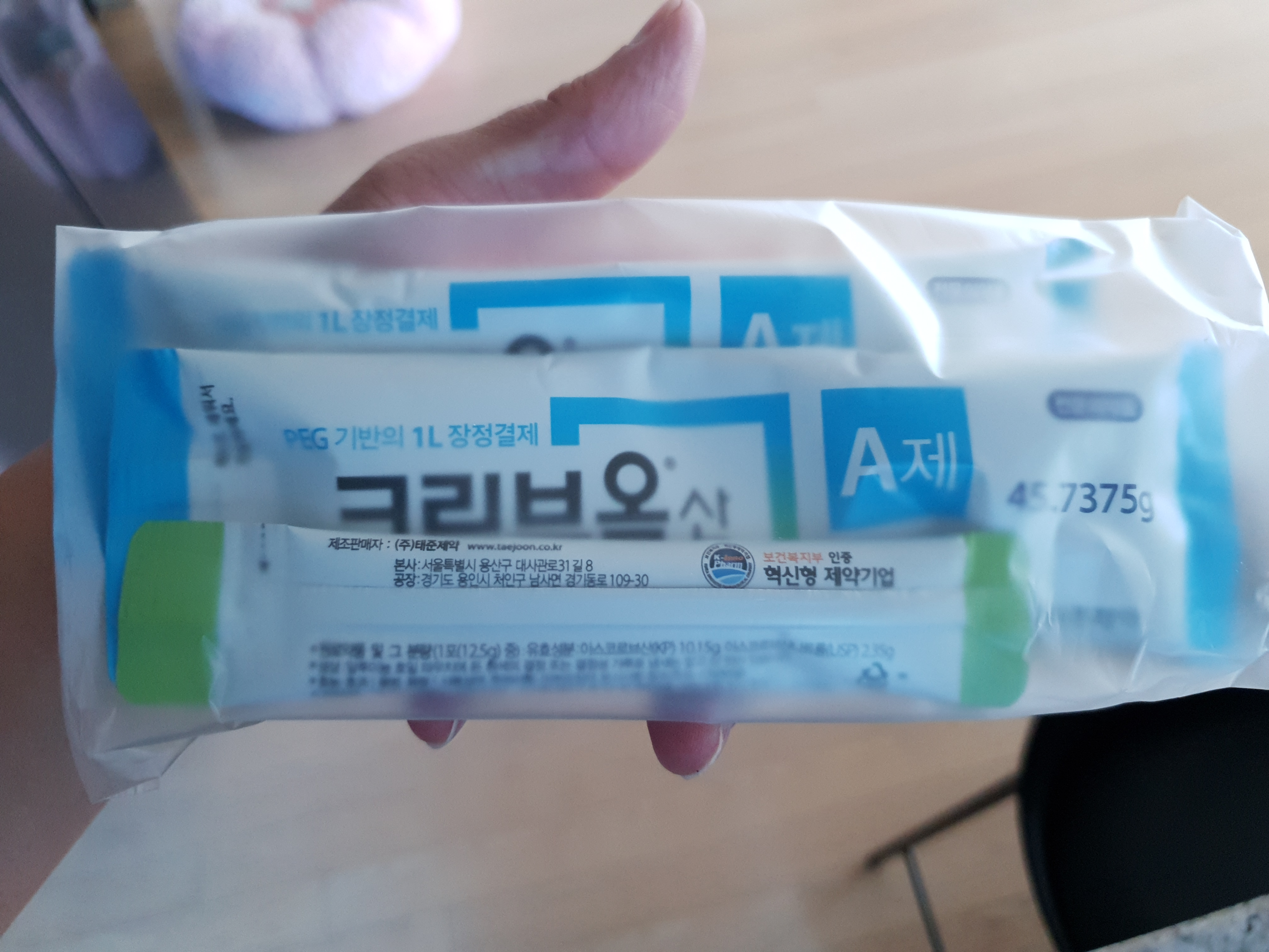 정말 이게 싫어서 대장내시경 못했는데요. 지금 글 적으면서도 이게 상상이 되어 헛구역질이 나네요. 그래서 알약으로도 나온다고 하길래 그걸 먹을까 생각도 했다가, 그래도 아직 정확도가 높을 것 같은 물약으로 기존처럼 먹어봅니다. 그런데 예전보다는 확실히 물 양은 적어졌네요.