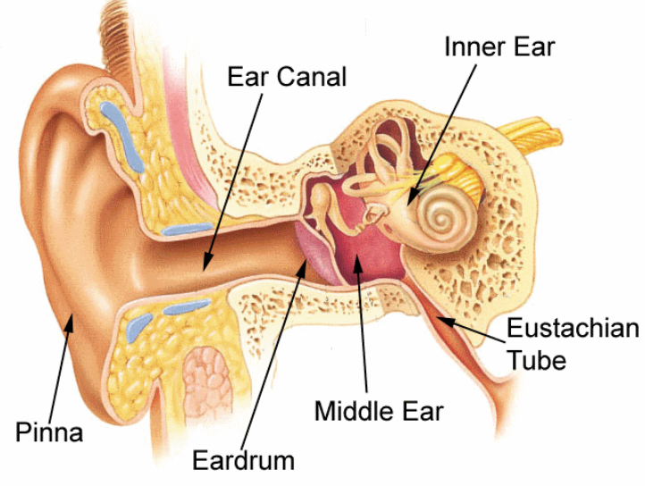 귀의 구조를 간단하게 이야기하면 이해하기 쉬울 것 같아 보충설명을 합니다. 귀에는 세 가지 주요 부분이 존재합니다. 아래와 같은 구조와 기능입니다.