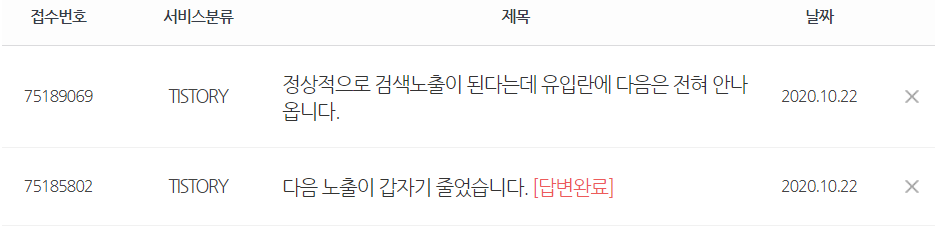 티스토리 노출 고객센터 검색등록 이의제기 신청