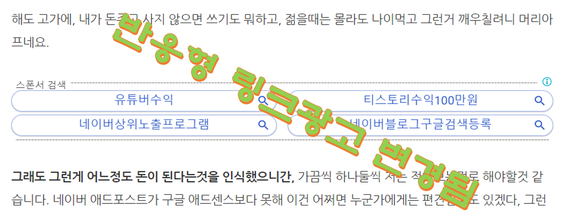 예전부터 링크광고에 대한 불만이 많았습니다. 대체적으로 링크광고란 이미지가 낚시성글과 같은 광고들이 많았으며, 들어가보면 아시겠지만, 내가 찾고자 하는 내용과 무관한 광고 및 내용들이 나옵니다. 심지어는 아무것도 안나오는 경우도 많습니다.