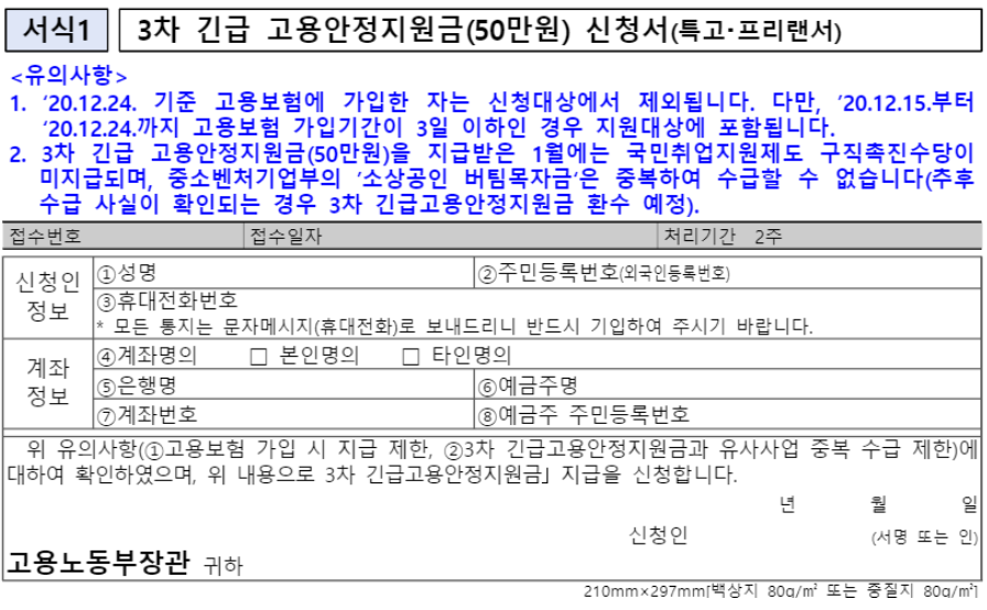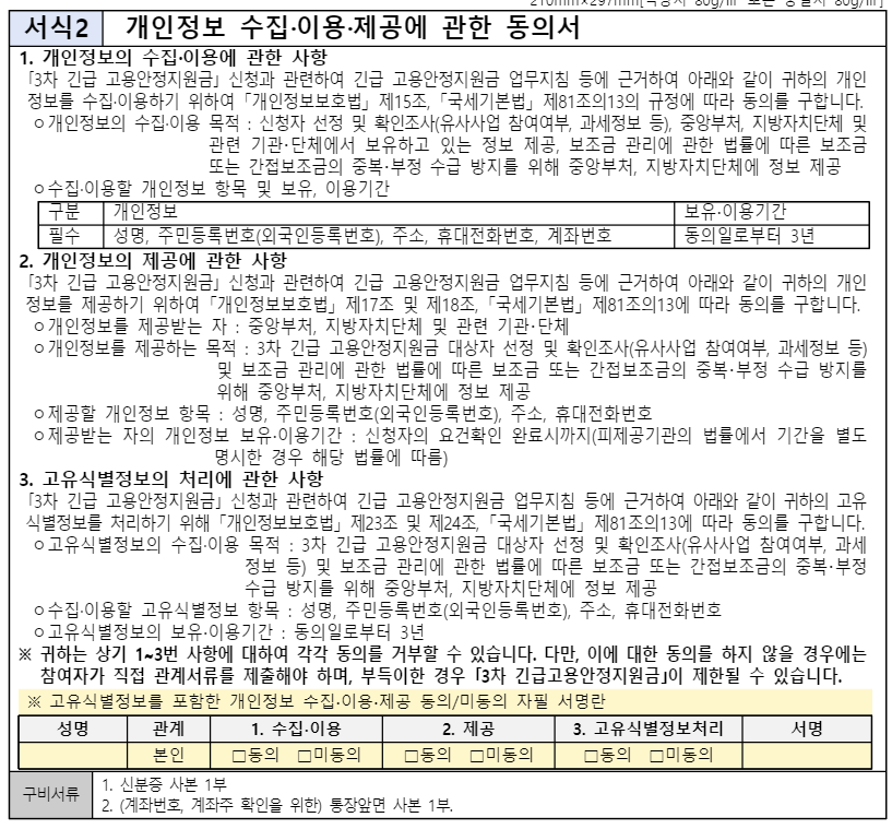 3차 긴급 고용안정지원금 시행 공고문 다운로드