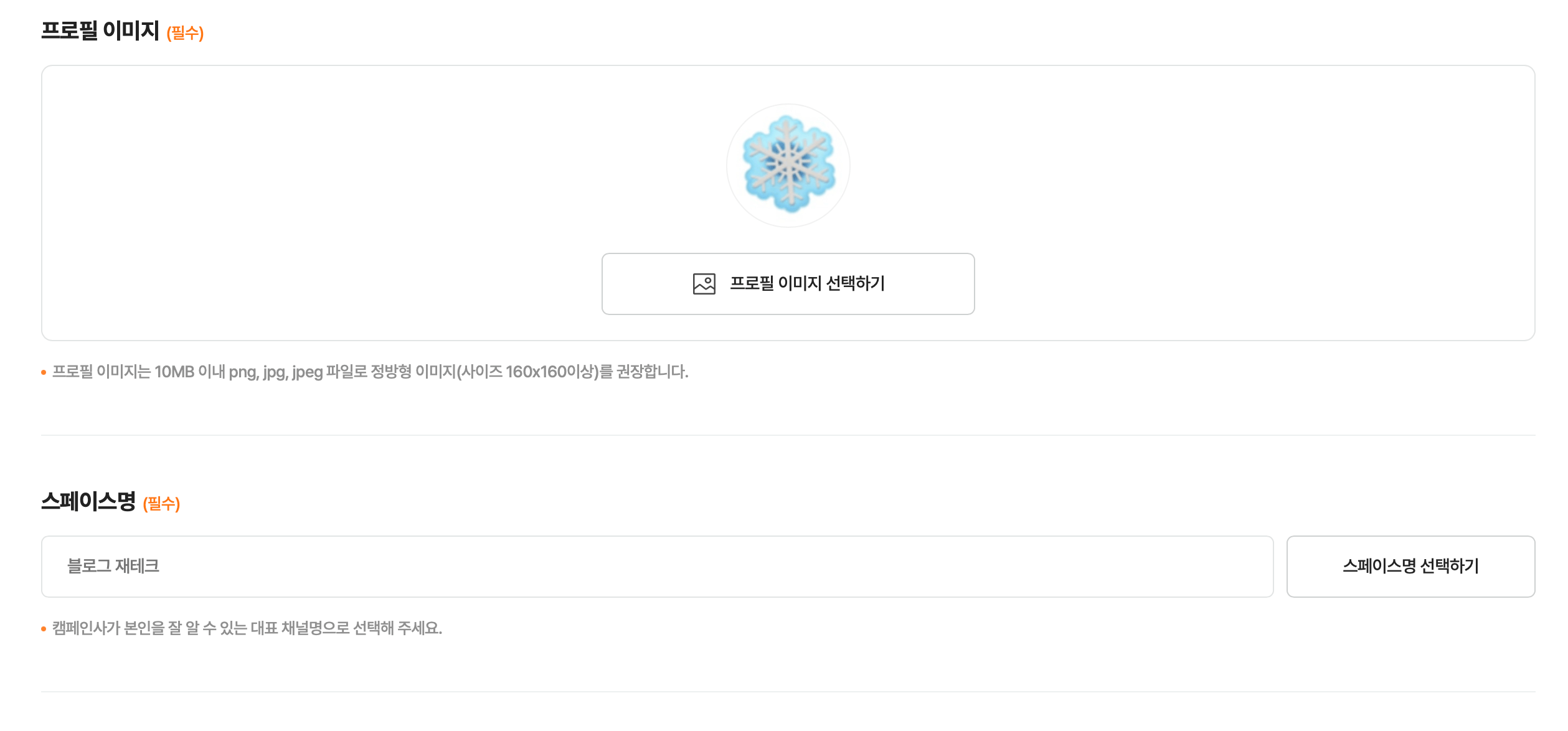 여기서 스페이스명 선택하기는 스페이스명을 만들 수 없고, 자신이 가입해 있는 블로그명이 그대로 스페이스명으로 나옵니다. 그런 후 60일 이후에 변경이 가능하다고 나와있으니 참고하세요.