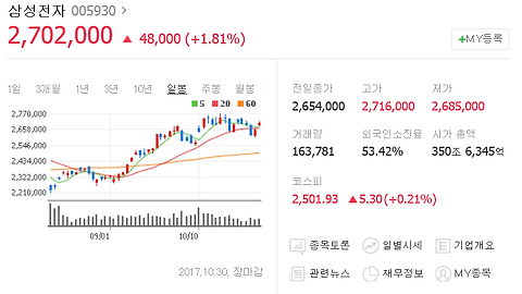 | 삼성전자 주가 주주환원책 70조 배당금얼마? (0) | 2017.10.30 |